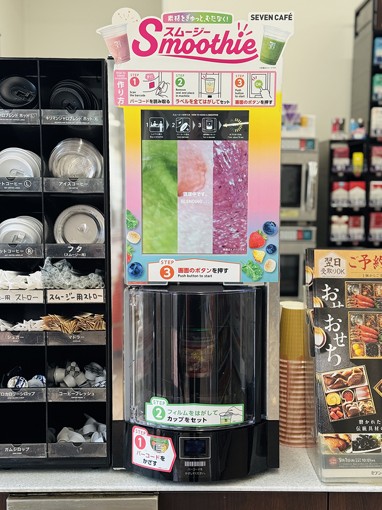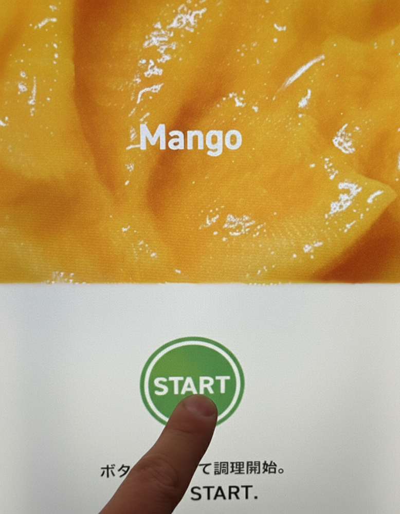 So you’ve paid (ideally with a commemorative Suica for an extra sustained clerk eye-roll), now head over to the smoothie machine, the real heart of this entire enterprise. Working tirelessly throughout the day to make your ‘fruit diet’ a reality, all this machine asks is for you to scan the barcode on the cup and remove the lid, confirm that you have removed the lid, and press a start button that again confirms that the lid has been removed (please remove the lid), and it’s off to the races. The lassi races™.