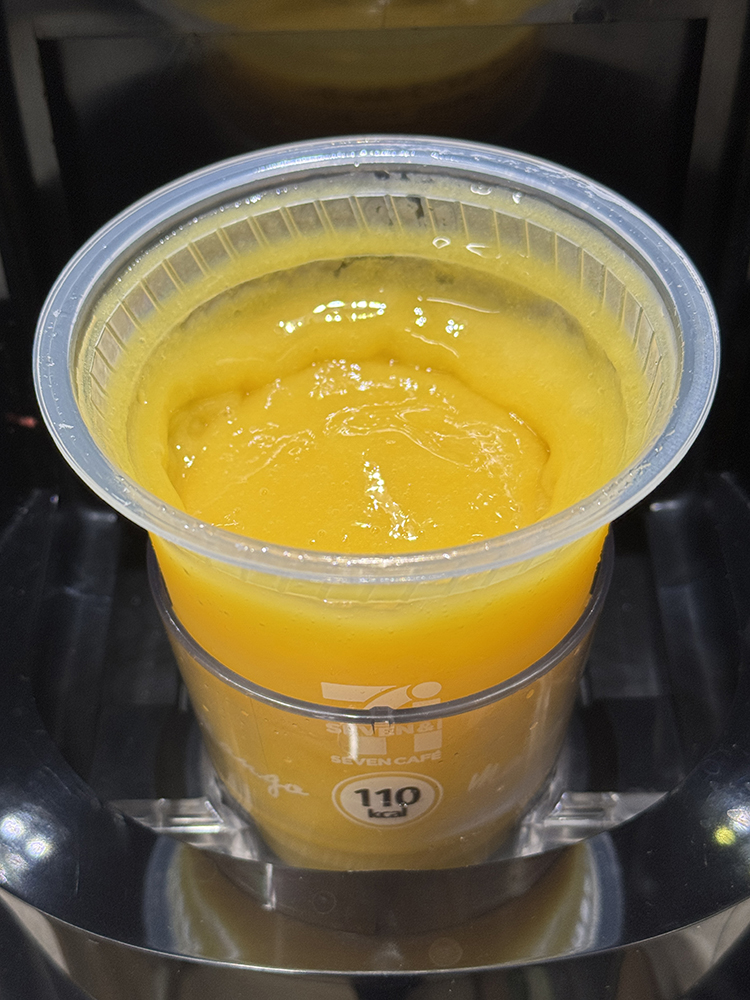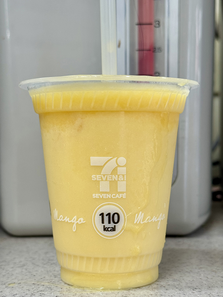 First a bit of history: In 2021- relatively recent in convenience store years- 7/11 introduced frozen fruit cups in the freezer section that customers could then blend in special machines. There were several different flavors- strawberry and banana, blueberry, greens- but one undeniable standout: pure, unadulterated mango. This is where our story begins.