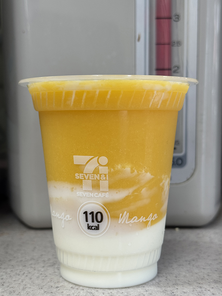 It’s important to note that the mango lassi doesn’t exist in nature. Or rather, it isn’t a naturally occurring product even within the hallowed aisles of 7/11 in Japan.To fill this desperate void, fearless conbini pioneers got up to some light subversion and found this great hack. Let’s test it out: